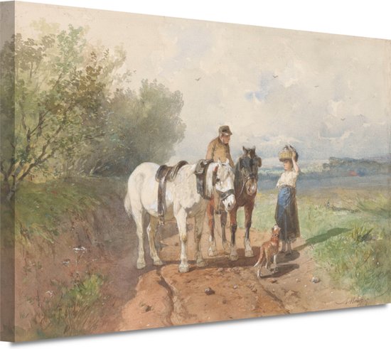 Chat sur un chemin de campagne - Portrait d'Anton Mauve - Portrait de Paarden - Peinture sur toile Animaux - Tableaux modernes - Toile - Décoration murale salon 60x40 cm
