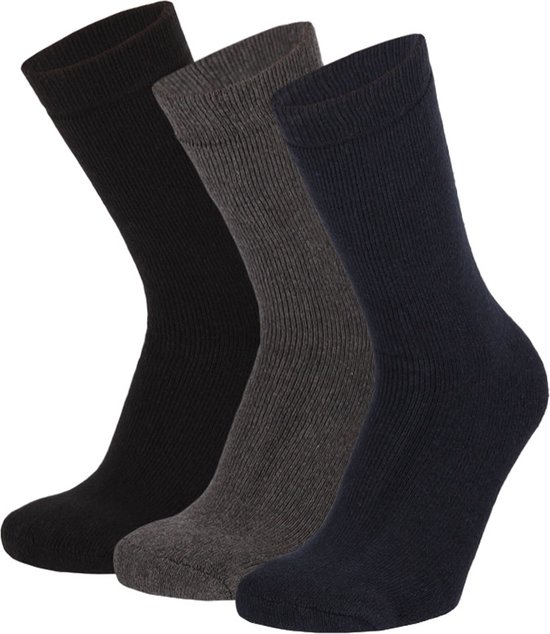 Chausettes thermique enfants - Blauw/ Grijs/ Zwart - Taille 31/34 - Chaussettes hiver enfant - Chaussettes épaisses enfant - Chaussettes enfant - Chaussettes chaudes enfant - Apollo