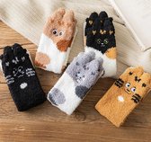 Chaussettes chaudes dames 3 paires - chaussettes moelleuses - chaussettes de maison - imprimé chat avec yeux - marron / noir / gris / blanc - 36-40 - mix - chaussettes d'hiver - chaussettes épaisses