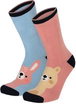 Apollo - Chaussettes d'intérieur - Lot de 2 - Antidérapantes - Animaux - Blauw - Rose - Taille 35/38