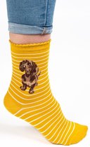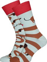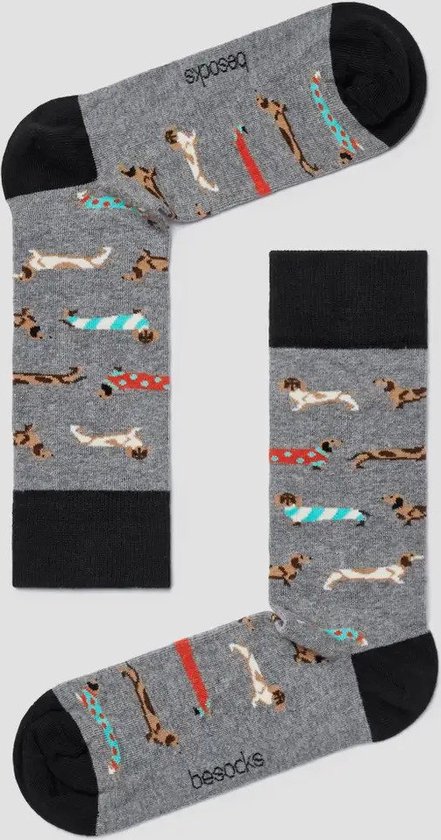Chaussettes drôles Grijs avec Teckels en coton Bio taille 36-40 - Teckels - Doux - Cadeau Trendy - Cadeau Trendy - Anniversaire - Cadeau
