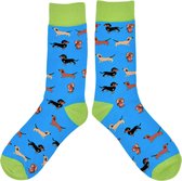 Tutti Footi - Chaussettes drôles avec teckels - Chaussettes Chiens bleu/vert taille 37-42