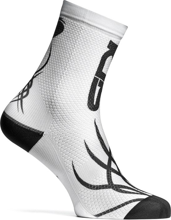 Chaussettes blanches de la marque SIDI avec un imprimé noir