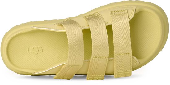 Couleur : Jaune Pomme. Tige : Matière synthétique et tissu issu de fibres recyclées. Semelle extérieure : EVA de canne à sucre. Fermeture : Velcro. Doublure : Tissu 100 % polyester recyclé. Détails : Trois brides ajustables pour un maintien personnalisé, embouts en TPU avec logo UGG®, construction légère et réactive pour un confort optimal, semelle intermédiaire et semelle extérieure en EVA durable. Durabilité : EVA de canne à sucre et matériaux 100 % recyclés pour la tige et la doublure. Utilisation : Idéales pour les journées d'été actives, à porter avec ou sans chaussettes pour un look dynamique et moderne.