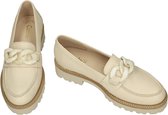 Magnifique mocassin MARCO TOZZI de couleur beige avec d'élégants maillons dorés.