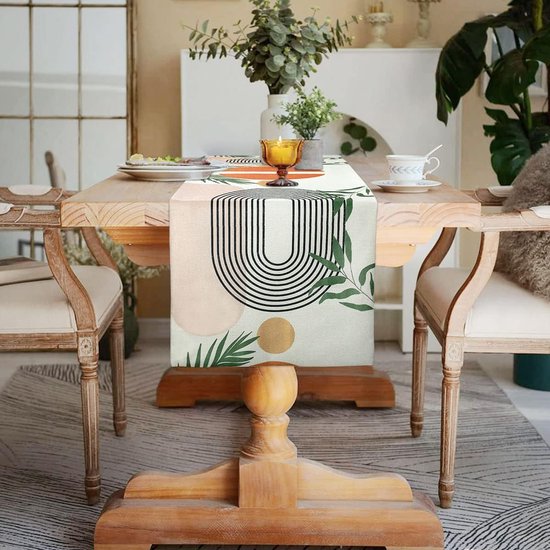 Chemin de table, beige, abstrait, lin, chemin de table, bohème, moderne, minimaliste, jaune, lavable, feuilles vertes, set de table, chemin de table, 40 x 140 cm, nappe antidérapante pour la table à manger