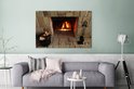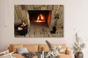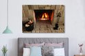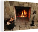 Cheminée dans un mur de pierre 180x120 cm - Tirage photo sur toile (Décoration murale salon / chambre) XXL / Groot format!