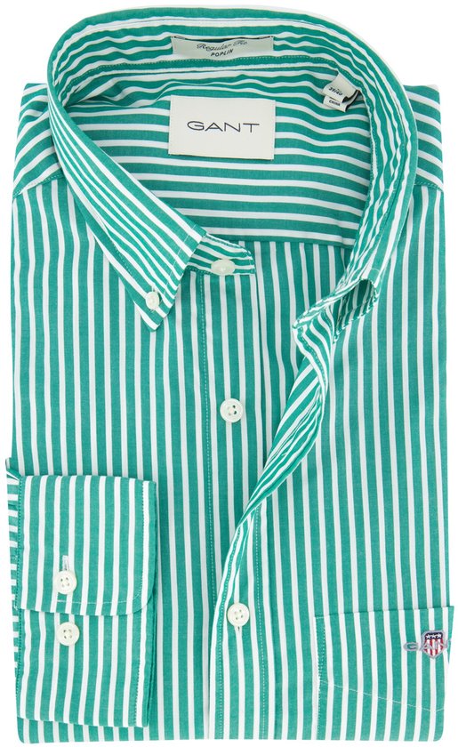La chemise rayée verte coupe régulière Gant est un incontournable élégant pour toute garde-robe décontractée. Fabriqué à 100 % en coton, il offre une coupe confortable. Le col boutonné et les manches longues avec poignets simples offrent un look classique. Le motif rayé subtil et la poche poitrine pratique le rendent fonctionnel et à la mode. Idéal pour le travail et les loisirs. Ajoutez cette chemise polyvalente à votre collection et profitez du confort et du style de Gant.