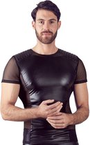 Vous souhaitez vous démarquer avec plus de masculinité ? Cette chemise élastique spéciale à coupe ajustée donnera un coup de pouce supplémentaire à votre masculinité. En portant cette chemise dans la chambre ou lors d'une soirée fétichiste, vous êtes au centre de toutes les attentions. Le col est amovible grâce à des boutons pressions métalliques. Les manches courtes sont en mesh et offrent un élément extravagant. Extra confortable avec une coupe légèrement ajustée pour un confort optimal.