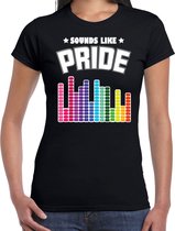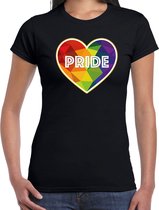 Chemise Bellatio Decorations Gay Pride pour femme en noir. T-shirt Pride imprimé avec le texte : Pride en forme de cravate. Agréable à porter lors de la Gay pride/parade 2023 ou d'un autre événement lhbti ! Matière: 150 grammes, 100% coton.