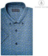Chemise homme Chris Cayne - chemise homme - taille L - blanc cassé menthe marine - manches courtes - chemise imprimée - chemise avec poche poitrine