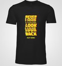 Chemise - Ne jamais regarder en arrière - Wurban Wear | Chemise drôle | Fitness | T-shirt unisexe | Motivation | Poids | Yoga | Sac de sport | Tapis de yoga | Noir