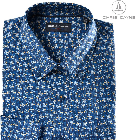 Chemise pour homme Chris Cayne - chemise à manches longues pour homme - taille M - couleur bleu foncé, cobalt, blanc cassé et jaune - manches longues - design - col boutonné - chemise avec poche poitrine - vêtements pour hommes - mode masculine