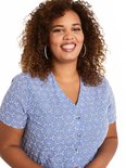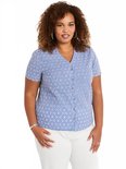 Fabriqué à partir d'un tissu portable, ce chemisier est parfait pour un look brodé. Un style sublimé par un design épuré : col en V, boutonné sur le devant, manches courtes et ourlet droit. maat: 36, 38, 40, 42, 44, 46, 48, 50, 52, 54, 56, 58