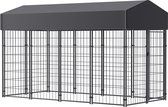 Cette grande niche pour chien offre beaucoup d'espace pour se déplacer, tandis que le grillage évite les méfaits et les accidents inattendus tout en permettant la ventilation. Grâce à la construction en acier robuste et lesté, ce chenil pour chien de haute qualité est durable et robuste. Le toit inclus est composé à 100 % de polyéthylène et est résistant au feu et aux UV et offre une protection contre le soleil, la pluie, la neige et d'autres conditions météorologiques. La porte à charnière offre une sécurité supplémentaire à vos chiens grâce au système coulissant verrouillable. C'est facile à assembler.