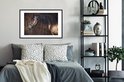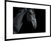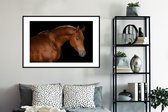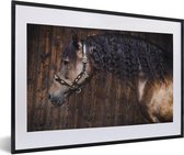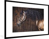 Cheval andalou devant un cadre photo fond en bois noir avec passe-partout blanc 60x90