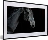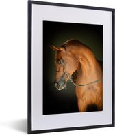 Cheval andalou devant un cadre photo fond en bois noir sans passe partout