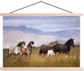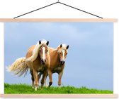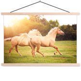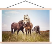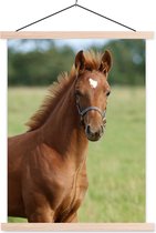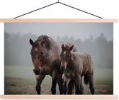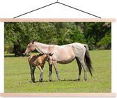 Cheval avec poulain dans l'herbe affiche textielposter lattes vierge 120x80 cm