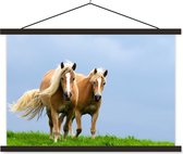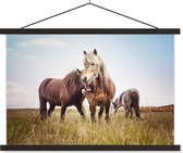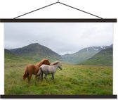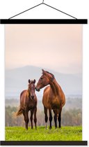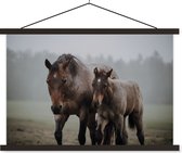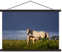 Cheval avec poulain dans l'herbe poster textielposter lattes noir 60x40 cm