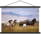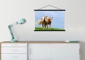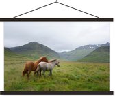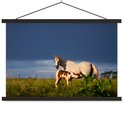Cheval avec poulain dans l'herbe poster textielposter lattes noir 90x60 cm