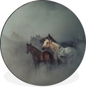 WallCircle - Cercle mural - Paarden - Brume - Troupeau - Aluminium - Dibond - ⌀ 90 cm - Intérieur et extérieur