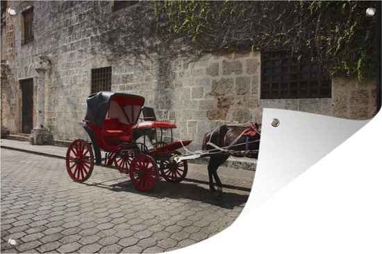 Cheval et calèche dans une rue de Saint-Domingue en République Dominicaine Affiche de jardin 90x60 cm - Toile de jardin / Toile d'extérieur / Peintures d'extérieur (décoration de jardin)