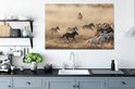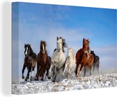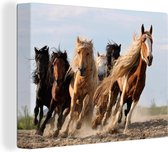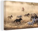 Chevaux mongols au galop en Mongolie 120x80 cm - Tirage photo sur toile (Décoration murale salon / chambre)
