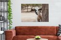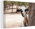 Chèvre curieuse derrière un arbre 120x80 cm - Tirage photo sur toile (Décoration murale salon / chambre) / Peintures sur toile Mammifères