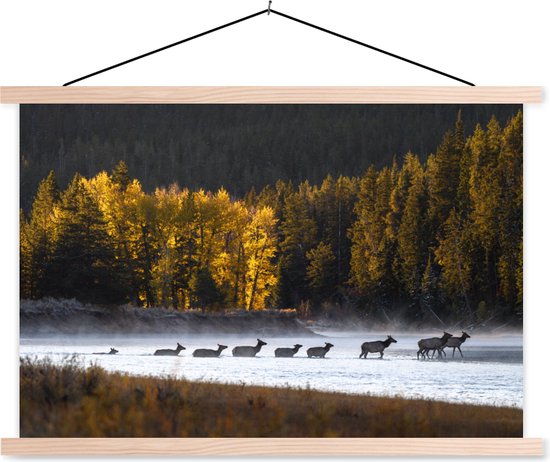 Chevreuil traversant la rivière affiche textielposter lattes vierge 120x80 cm
