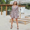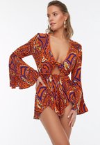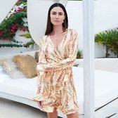 La combinaison courte a des manches longues terminées par des volants. Boutonnez et nouez la combinaison à la taille gauche de manière confortable voor jou . Partez-vous en vacances? Assurez-vous de prendre cette combinaison avec vous !