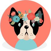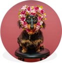 Chien avec une couronne de fleurs en forme de coeur Assiette en plastique cercle mural ⌀ 150 cm XXL / Groot format!