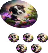 Sous-verres de verre - Rond - Puppy - Soleil - Fleurs - Nature - Border Collie - Chien - 10x10 cm - Dessous de verre - 6 pièces