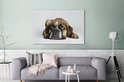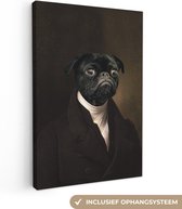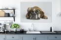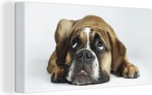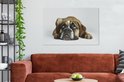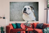 Chien bouledogue devant toile de fond blanc 2cm 140x90 cm - Tirage photo sur toile (Décoration murale salon / chambre) / Animaux sauvages Peintures sur toile