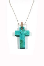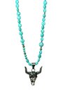 Chique - collier en pierres naturelles turquoise - avec un taureau en acier inoxydable - longueur 80cm
