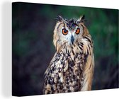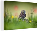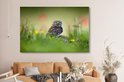 Chouette assise sur un rocher dans un champ 180x120 cm - Tirage photo sur toile (Décoration murale salon / chambre) XXL / Groot format!