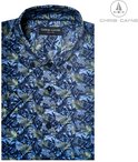 Magnifique chemisier / chemise pour homme de Chris Cayne. Modèle : 1217. Couleur : 4335 imprimé bleu/vert. Manches courtes et en 100% coton