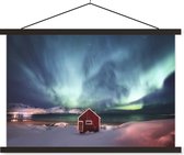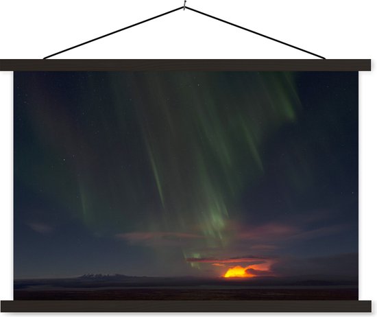 Ciel nordique au dessus d'une éruption volcanique affiche textielposter lattes noires 60x40 cm - Tirage photo sur plaque scolaire (décoration murale salon / chambre)