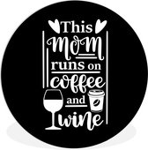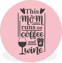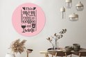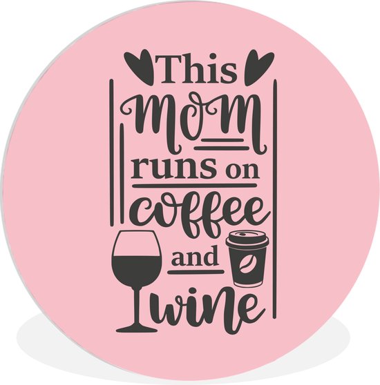 Citation de la fête des mères Cette maman court au café et au vin sur fond rose Assiette en plastique de cercle mural - ⌀ 150 cm - peinture ronde - impression photo sur cercle mural en plastique (forex) / cercle vivant / (décoration murale)