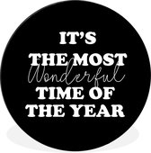 Citation de Noël C'est la plus belle période de l'année sur fond noir Cercle mural aluminium - ⌀ 90 cm - peinture ronde - impression photo sur aluminium / dibond / cercle mural / cercle vivant / cercle de jardin (décoration murale)