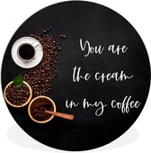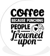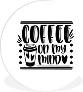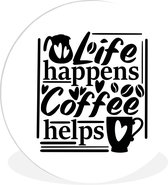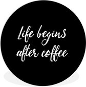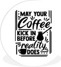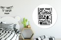 Citation Que votre café entre avant que la réalité ne le fasse sur un fond blanc Plaque en plastique de cercle mural - ⌀ 120 cm - peinture ronde - impression photo sur cercle mural en plastique (forex) / cercle vivant / (décoration murale)