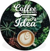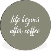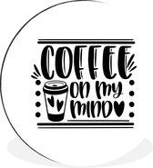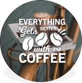 Citation Que votre café entre en jeu avant la réalité sur un fond blanc Aluminium ⌀ 140 cm