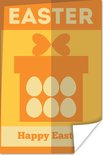Kom dans l'ambiance de Pâques avec cette décoration murale. En haut de l'image se trouve le mot EASTER en caractères gras. Au centre de l'image se trouve un cadeau avec 6 œufs et un arc dessus. Au bas de l'image se trouve la citation Happy Pâques. Cette statue ira bien avec l'intérieur du salon à Pâques ou comme cadeau pour Pasen.
