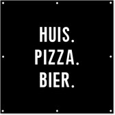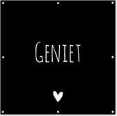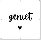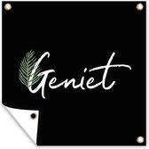 Les Posters de jardin, également appelées toiles de jardin, sont des affiches spécialement conçues pour être accrochées à l'extérieur. Cette nappe de jardin peut donc prendre une raclée. La voile Bisonyl a été utilisée pour cette affiche extérieure. Cette voile est une bâche enduite avec une belle finition. L'affiche de jardin est résistante aux UV, elle ne se décolore donc pas au soleil. Plusieurs anneaux ont été placés dans la toile pour que vous puissiez facilement l'accrocher! Jusqu'à une taille de 120x80 cm, les anneaux sont dans les coins, avec des tailles plus grandes, les anneaux viennent tous les 60 cm. Le tissu résiste aux différentes influences climatiques et est garanti 3 ans.