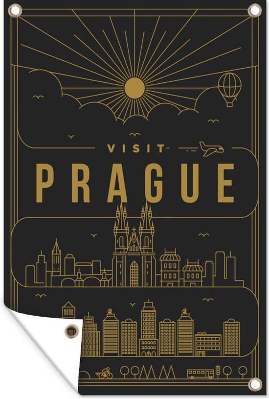 City View Prague affiche de jardin noir toile en vrac 40x60 cm - petit - toile de jardin / toile d'extérieur / Peintures pour l'extérieur (décoration de jardin)