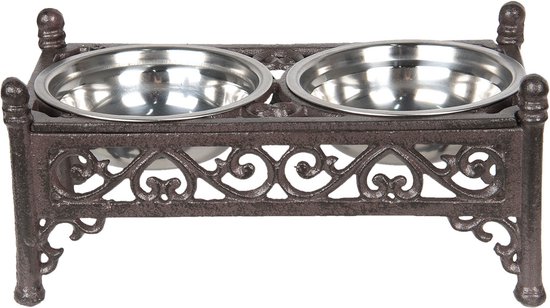 Clayre & Eef Bols d'alimentation pour chien 28x15x13 cm Marron Fer Rectangle Bols d'alimentation pour chat