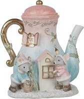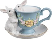 Clayre & Eef Image de décoration Lapins 16x8x12 cm Blanc Beige Plastique