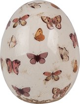 Clayre & Eef Image de décoration Œuf 16 cm Blanc Beige Céramique