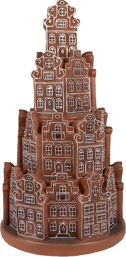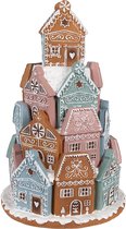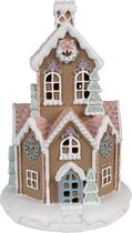 Clayre & Eef Maison en pain d'épices avec LED Ø 18x33 cm Décoration de Noël en plastique marron