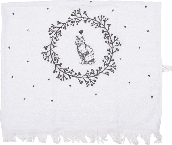 Clayre & Eef Serviette invité 40x66 cm Blanc Coton Chat