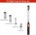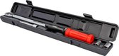 La clé dynamométrique professionnelle est fabriquée en acier au chrome-vanadium durable et résistant à la rouille et possède une poignée confortable et antidérapante. La double échelle (Nm et ft-lb) est appliquée avec la technologie laser, ce qui garantit un marquage clair et facile à lire.